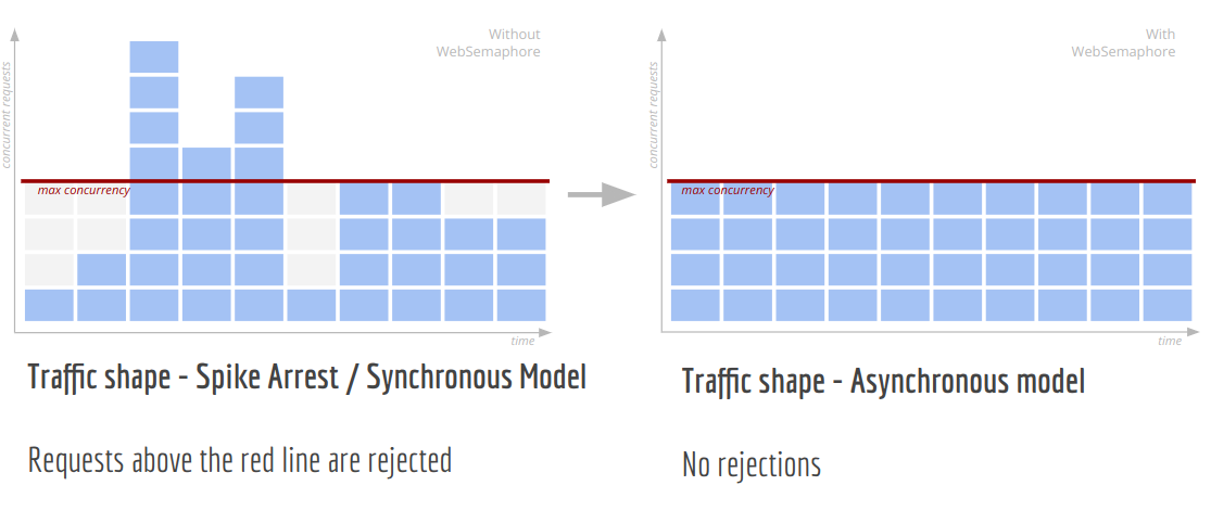WebSemaphore wraps any API and provides amortization of traffic so that the total count of processes accessing the API doesn’t exceed a preconfigured value.